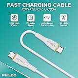 Philco USB C to USB C Cable, 20W Type C Fast Charging, Soft-Touch Silicone Cord, Durable, Tangle-Free Power Cable for MacBook, iPhone 16, iPad, Samsung, Android & More 4FT.