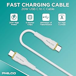 - Experience the perfect combination of power, durability, and flexibility with the Philco 20W USB C Cable. Designed for high-speed charging, this premium USB C long charging cable 4ft delivers a powerful 20W output, ensuring your devices charge at maximum efficiency. Built for strength and longevity, its reinforced structure can withstand up to 10,000 bends, making it a highly durable choice for daily use. The ultra-soft, tangle-free design enhances portability while maintaining superior resilience. Supporting data transfer speeds of up to 480Mbps, it keeps you connected and productive. Whether you're powering up your laptop, tablet, or smartphone, the Philco USB C PD cable provides a strong, reliable, and stylish charging solution that stands up to heavy use.