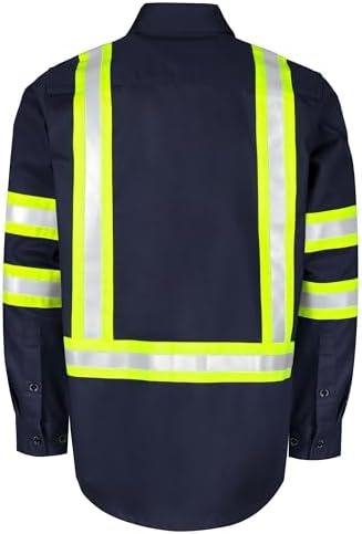 BOCOMAL FR Shirts High Visibility Button Down 7.5oz ANSI/ISEA Type O Class1 Flame Resistant Hi Vis Refective Safety Jacket