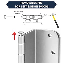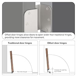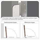 - Upgrade your door hardware with these premium offset door hinges in brushed nickel, designed for both interior and exterior doors. These 3.5-inch swing clear hinges with a 5/8" radius corner allow your doors to open wider than traditional hinges, providing maximum swing. The heavy-duty construction is perfect for front doors or any high-traffic areas, and the rust-resistant brushed nickel finish ensures durability and a sleek look that resists wear and paint drips. Each set includes 3 high-quality door hinges along with 18 matching screws for easy installation, all in the same color as the hinges. The door hardware kit also includes a wall handle door stopper and grease, making this a must-have for any home improvement project. All hinges must be pre-lubricated with hinge oil included in the kit. The 3.5 inch door hinge central shaft includes the damping oil feature which is built to reduce metal-to-metal friction and provides quiet open-door and close-door experiences With screw holes matching traditional hinges, these heavy-duty door hinges are easy to install, making them the ultimate choice for those looking to enhance their doors with modern functionality and style. Ensure at least three inches of clearance between the door and the wall for optimal performance.