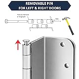 Offset Door Hinges: Brushed nickel door hinges are smoothly operated by plain-bearing construction. Our 3.5inch door hinges feature a sleek metal finish with 5/8'' radius corners, also known as swing clear hinges, they enable doors to open further than traditional hinges Interior&Exterior Door: Hinges are designed to pass in both indoor and outdoor settings, including front doors. Door hinges are made of high-quality reliable flat iron with a protective brushed nickel finish so no worries about rust and paint dribbles Door Hardware: Each package includes a set of 3 hinges along with 18 matching screws, all in the same color as the hinge. Also package includes wall handle door stopper & grease, making this kit a must have for home improvement Prevented creaking: All hinges must be pre-lubricated with hinge oil included in the kit. The 3.5 inch door hinge central shaft includes the damping oil feature which is built to reduce metal-to-metal friction and provides quiet open-door and close-door experiences Installation: Our heavy duty hinges have screw holes that match those of traditional hinges, making installation easy. Please note that a minimum of three inches of clearance is needed on the inside of your door between the wall and the door jam for the hinge to work correctly