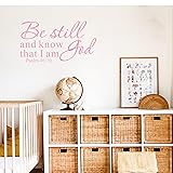 - If you are looking for your favorite home decoration, maybe decorating the room with our "Be Still and Know That I am God Psalm 46:10" christian wall decor is a good choice. The bible verses wall decor suitable for living room, bedroom, office, churches, prayer room SPECIFICATIONS Color: Pink Quantity: 1pack Material: Waterproof PE material Size: 16.9in x 9.4in (43cm x 24cm) USAGE STEPS -Step 1. Tear off the transfer film. -Step 2. Paste the transfer film onto the printed pattern. -Step 3. Cut the desired pattern with scissors. -Step 4. Stick it on the wall and remove the transfer film. Our removable wall art decal quotes are the perfect way to make a statement without having to redecorate an entire room. WARM TIP Scripture wall art stickers are not suitable for sticking on uneven and dusty surfaces