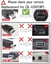 3.3Ft USB Cable works as a replacement for Olympus Camera Charger CB-USB7. The cable has charging and data transmission functions, USB Charging depends on the model, please refer to the manual to determine if the camera has USB charging function Compatible with Olympus FE-20, FE-26, FE-45, FE-46, FE-47, FE-150, FE-160, FE-180, FE-190, FE-220, FE-220D, FE-230, FE-240, FE-250, FE-260, FE-280, FE-290, FE-300, FE-310, FE-320, FE-330, FE-340, FE-350 wide, FE-360, FE-370, FE-3000, FE-3010, FE-4000, FE-4010, FE-4050, FE-5000, FE-5010, FE-5020, FE-5050,VR-310, VR-320, VR-330, VR-340, VR-370 Compatible with VG-120, VG-130, VG-140, VG-145, VG-170, VG-190,VH-210, VH-410, VH-510, VH-515, VH-520,X-15, X-730, X-735, X-745, X-750, X-751, X-785, X-790, X-795, X-800, X-820, X-825, X-830, X-835, X-840, X-845, X-855, X-865, X-875, X-880, X-890, X-895, X-900, X-905, X-915, X-920, X-925, X-930, X-935 WARNING: This is a 8-PIN (8P) connector cable. NOT compatible with Olympus 12-pin (12P) cameras. Verify your device model before purchase. Multi-Functional: Use it to charge your camera or transfer data quickly and efficiently, making it a versatile accessory for any photographer or videographer.(if your camera model support charging) Perfect Length: The 3.3-foot (1m) USB data cable provides the ideal reach for comfortable use, whether you're charging your camera or transferring photos and videos to your computer