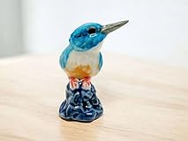 WitnyStore Tiny 1¼" Kingfisher Bird Sitting On Stone Figurine - Miniature Hand Made Painted Ceramic Birds Aves Colorful Porcelain Feathered Animals Cute Decorative Collectible Figures Décor Gifts