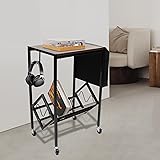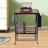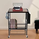 NIENIEE Record Storage Rack - Large Record Player Stand Storage - Record Player Table - Media Storage Rack - Contemporary Wood & Metal Design with Wide Feet for Greater Stability