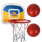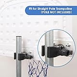 MADE WITH DURABLE MATERIALS: Made from high-quality materials, this trampoline basketball hoop attachment is built to last. It can withstand the rigors of prolonged use and maintain a stable and secure state, providing you with long-lasting enjoyment. Additional Protective Net Design:The trampoline basketball hoop is 17.7x13.7inch,fit for the straight pole trampoline only. the protective net can prevent ball from being thrown out of the trampoline, your child have more fun on the trampoline and layup whatever he wants and protects the child from injury ACTIVE FAMILY FUN: This trampoline basketball hoop attachment is a family-friendly sports and entertainment product that can provide endless basketball fun for you and your family and friends. It can help you strengthen your relationships with your loved ones, while also improving your physical fitness and coordination skills. EASY TO INSTALL: This trampoline basketball hoop attachment features a simple and intuitive design, making it easy to install and disassemble. Simply follow the instructions provided, and you'll have it up and running in just a matter of minutes. What You Will Get: The trampoline basketball hoop comes with 1*backboard with Hoop, 1*Universal Clamp, 2*rubber ball, 1*pump, and hardware.