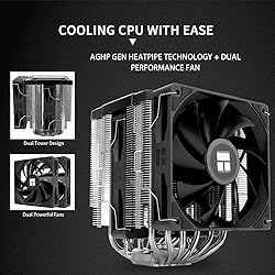 [Good Heat Dissipation] The CPU cooling is mainly composed of a digital version of a dual tower + double fans + a magnetic top cover. The 6 pure copper heat pipes and the pure copper base can well contact the temperature of the CPU, with the combination of a high speed of 1850RPM, the radiator has a good heat dissipation effect [CPU Cooler Specifications] Model: Peerless Assassin 120 Digital Black, overall size: 138x125x162mm, fan size: 120x120x28mm, fan speed: 1850RPM+10%, wind pressure: 2.21mm H2O, air volume: 88.89CFM, operating noise: ≤25.6DB (A), fan power supply interface: 4PIN PWM, the radiator is equipped with dual fans with S-FDB bearings, which have the characteristics of long life and can ensure long-term heat dissipation of the cpu radiator [AGHP Heat Pipe Technology] The 6X6mm heat pipe adopts the 5.0 version of AGHP technology, which can solve the inverse gravity effect caused by standing/lying. The pure copper heat pipe is combined with the base of the precision reflow soldering micro-carved copper bottom, targeting the characteristics of the new generation of dual-platform heating,and optimizes the heat dissipation performance of the dual-platform [162mm Height] The overall height of the heatsink cooler is 162mm, which is compatible with mainstream ATX chassis. The radiator adopts an overall black style, and the digital display board design of the magnetic top cover opens up a new world of heat dissipation, combining the high heat dissipation function of the radiator with innovative technology. The overall design of the dual tower and dual fans is compatible with the installation of high-capacity memory and graphics cards [Wide Compatibility] The cpu cooling is compatible with platforms: AMD: AM4/AM5 and LGA1851/1700/1150/1151/1155/1156/1200, and comes with dual-platform mounting clips, which can be well installed on the corresponding platform. It can be installed according to the instructions or installation tutorial. (Note: The installation of the AMD platform requires the use of the original backplane of the motherboard, which is not included with this product)