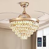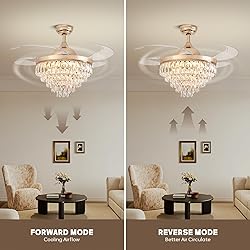 【Luxury Gold Crystal Ceiling Fan Light】CROSSIO gorgeous crystal fandelier is made of K9 clear crystal, clear acrylic, which looks beautiful and elegant. Suitable for many scenes, such as kitchen, Dining Room, Living Room, library, office, and cafe, etc. 【Reversible & Silent】The upgraded pure copper DC motor is more stable and silent during operation, and the 6-speed wind speed mode is adjustable. It also supports reverse mode, which can be used in summer and winter. 【Remembered LED & Dimmable Ceiling Fan】The chandelier ceiling fan has a 57W LED dimmable light source, Adjustable color temperature and brightness, which can easily switch between white light, natural light, and warm light. All settings are REMEMBERED when turning off lights with remote. 【APP & Remote Control】The crystal ceiling fan lights with remote and smart APP control, All operations of ceiling fan and lights can be controlled with remote control and APP, Easily realize the convenience brought by smart life. 【Custom Downrod】If you need a longer downrod, please contact customer service, we will provide you with customized services.