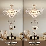 CROSSIO 48" Crystal Ceiling Fans with Lights and Remote, Dimmable, 6 Speeds, Luxury Chandelier Fan Rose Gold Crystal Fandelier for Dining Room Living Room Bedroom