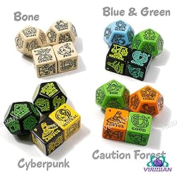 3 Giant Generators in One Set: Includes Class, Species/Race, and two Alignment Generator dice for endless character combinations. Hand-Drawn Artwork: Each die features original, whimsical-yet-functional, tarot-inspired illustrations by Mike Saltzman (Viridian Dice). The DM’s Character-Creation Sidekick: Broad results keep your storytelling flexible. A “Chaotic Good” roll could make for a lovable rogue or a dangerously impulsive hero. “Elf” might mean a forest-dwelling scout or a high-born noble. “Wizard” could be a bookish scholar or a power-hungry mage. You control how the results come to life. Crafted for a Lifetime of Adventure: Produced by Q Workshop with durable materials and crisp engraving to stand up to years of campaigns. Big, Bold, and Readable: Jumbo 30mm dice with clear iconography, designed for maximum legibility even across the table. For Any Fantasy TTRPG: Ideal for Dungeons & Dragons, Pathfinder, and other tabletop role-playing games where characters are created on the fly. Ideal for Fantasy TTRPGs: Whether it's Dungeons and Dragons (D&D DND), Pathfinder, or another fantasy game, these dice should fit in with suitably broad/generic categories and artwork.
