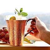 Amitofo Copper Ice Tea Cup with Handle - 100% Pure Real Copper Hand Hammered, Heavy Gauge for Ice Tea, Beer,Coffee, Cocktails (Small 15 OZ / 410 ML)