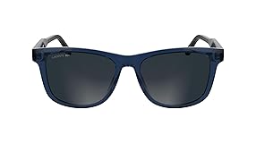 The bio-injected frame features a rectangular shape, softened by rounded lines for a contemporary look. The acetate temple tips are highlighted by the signature Lacoste green detail The acetate temples are enriched with a custom metal core featuring the Monogram pattern and the extended logo. This model is available in four neutral and transparent color options for greater ease of use: grey, brown, sand, and blue. Global L fit with RXable frame that allows the application of prescription lenses.