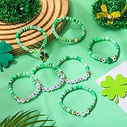 - Features: Whether you are treating yourself or surprising a loved one, the adjustable nature of these green clay beads bracelets ensure a nice fit for people, enhancing their appeal as thoughtful gifts. While designed with St. Patrick's Day in mind, these green beaded bracelets are suitable for various occasions beyond the holiday. Their elegant design and versatile color palette make them good for birthday, holiday, or simply as a treat for oneself. Specifications: Material: alloy, polymer clay Color: green, gold, white Package includes: 7 x St. Patrick's Day stackable stretch bracelets Notes: Manual measurement, please allow slight errors on size. The color may exist a slight difference due to different screen displays. If you use our products with your own necklace or pendant, please check whether the product is in good condition before use to avoid unnecessary loss of personal property.