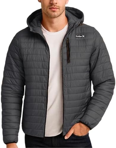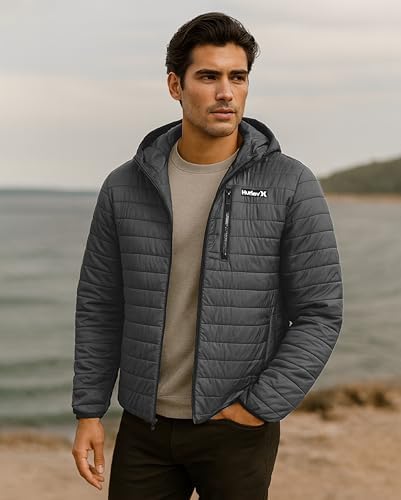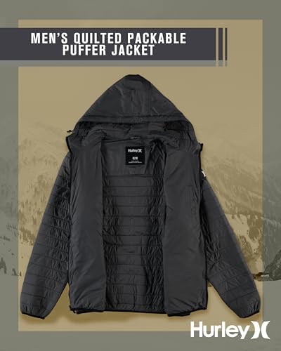 Hurley Mens Puffer Jacket - Lightweight Packable Insulated Winter Coat for Men - Weather Resistant Quilted Outdoor Jacket