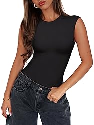 - PINKMSTYLE Womens Crew Neck Sleeveless Bodysuit Double Lined Stretchy Fitted Basic Thong Body suit Tank Tops Perfect for layering or rocking on its own, this bodysuit is a must-have addition to your wardrobe. The soft, double-lined fabric ensures a smooth silhouette while providing the perfect amount of stretch to hug your curves in all the right places. Whether you're dressing up for a night out or keeping it casual with your favorite jeans, this versatile piece can be styled to fit any occasion. With a classic crew neck design and sleeveless cut, it offers both comfort and chic simplicity. The fitted style gives you a sleek look that pairs effortlessly with skirts, shorts, or trousers. Plus, the thong back means no visible panty lines, making it an ideal choice for form-fitting outfits. Available in a variety of colors, you can easily mix and match to create endless outfits. The PINKMSTYLE Women's Crew Neck Sleeveless Bodysuit is not just a basic—it's a fashion essential for the modern woman who values both style and comfort. Embrace the ease of wearing this bodysuit as your go-to staple for any season!