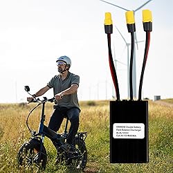 Main Functions: This dual battery connection adapter can manage the two battery packs on your and support both sets of batteries to provide smart balanced power to your at the same time. It will detect the voltage of both batteries in real time. When one battery runs out during riding, it will automatically switch from one battery to the other to power your again. Current Increase: It can manage 2 batteries supply power to E at same time, or support a single battery for power supply. Dual battery in parallel can increase capacity and range, and dual battery parallel modules discharge at the same time to increase the current. How to Use: This dual battery pack switch designed with port, the male is the input end connected with 2 batteries, and the female is the output end connected with the controller. It can connect 2 batteries in parallel / double capacity. When installing, please make sure your batteries are the same voltage, and the capacity of the batteries can be different. Premium Material: This parallel battery adapter is made of premium aluminum alloy material, which is, lightweight and has a long service life. With this battery connector, you can easily add 2nd battery to your ebike. Please do not confuse the positive and negative connectors on the dual battery switch. Make sure that both batteries are powered off before connecting. Specification: The voltage of dual battery discharge converter is 20V-72V (The Limit Voltage Is 72V, Not Full Power 84V, Please Pay Attention!). Maximum output current is 40A, connector is XT60. Wire type is 14 AWG.