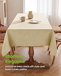 Pureegg Rectangle Linen Tablecloth Waterproof & Stain Resistant, Wrinkle-Free Table Cloth Adds Elegance and Protection, Ideal for Dining, Party, Wedding and Outdoor, 52 x 70 Inch, Beige