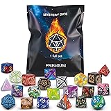 Surprise Mystery Bag: QMAY Mystery Dice has OVER 100 styles dice, a variety of patterns and colors of dice bag. Which one will you get? Come on, enjoy the surprise and fun brought to you by QMAY Mystery Dice Set! Polyhedral Dice Set: Each bag contains a full matching set of polyhedral dice; D4, D6, D8, D10, D%, D12, D20 plus 1 random dice bag. (A complete set of polyhedral dice of the same style, not each dice has a different pattern!) Easy to Read: There are as large as possible and easy-to-read numbers on each surface, use underscoring to differentiate 6 and 9. Ideal for beginning players and more advanced ones. High Quality Material: The d and d dice is made of high-quality acrylic, waterproof, anti-oxidation, durable, easy to roll and not easy to damage. Perfect Gift Idea: Give your friends a surprise! No one will know what surprises are hidden inside the bag until open it. Our Mystery Dice great for games and the accessory to any game room. Perfect as DND gifts or dungeon master gifts. Come surprise your adventure partner or yourself!