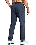 LIGHTWEIGHT & GENTLE STRETCH: Crafted from lightweight, moisture-wicking fabric, not only keeps you dry but they also keeps you cool during a full day of golf. Gentle stretch and shape-retention provides comfort and flexibility, making them perfect for outdoor activities and everyday wear SUN PROTECTION & WATER-RESISTANT: UPF 50+ material with excellent sun protection that blocks harmful UV rays and shielded your skin from burning sun. Water-resistant capacity to help resist light rain for a short time. PS: Although the pants may arrive with some creases due to packaging, a simple water wash will eliminate them TAILORED COMFORT: The men's golf pants feature a 2" belt loop design, offering a secure and polished fit. The zipper fly with button closure ensures durability, while the 3D-cut tailoring provides a sleek, flattering fit that sits comfortably at the waist with a straight leg for an athletic, modern look 4 FUNCTIONAL POCKETS: Two convenient hand pockets provide safe storage which are deep enough to store your 6.7" mobile phone. 2 back snap fastener pockets stash your essentials, such as golf ball, gloves or any other essentials during your game or commute VERSATILE OCCASIONS: G GRADUAL mens 30"/32"/34" Inseam casual pants are well-made and comfortable. Whether you are going to the office, spending the weekend outdoors, or participating in golf sports, traveling, and daily life, they will perfectly meet your needs