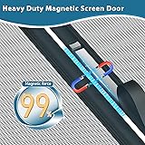 NEWEST MAGNETIC SCREEN DOOR - Heavy Duty Net-Within-Network structure features, Augblinds This screen door net is made of high quality high density mesh material and screen border is eco-friendly PVC, durable & tear-proof, and still maintains its good performance in long-term use. Keep Bug & Dust Out, better than other screen door nets in the market. MAGNET SCREEN DOOR SIZE - Augblinds magnetic screen door mesh offers a wide selection of sizes, fit for courtyard front doors, single doors, double doors, sliding doors, and more. Before purchasing, please measure your door size carefully (excluding the door frame part) and order the appropriate size. The screen mesh measures 38“ x 83” and fits door size of 36 x 82 inch or below. UPGRADED 99% POWERFUL MAGIC FORCE - This magnetic screen screen door is magnetic force system design, no need to operate manually and automatically open and close, for kid & pet friendly, which can effectively keep bugs out, and other insects from entering the room, while maintaining air circulation, providing you with a fresh and comfortable home environment. WINDPROOF HASP DESIGN - The specially designed hook&loop in the middle and bottom of the screen door mesh can effectively consolidate the magnetic screen and prevent it from being blown open. Screen door is detachable design and easy to clean & maintain. suitable for courtyard, living room, bedroom,balcony, kitchen, etc. EASY TO INSTALL & USE: AUGBLINDS screen door mesh is self-adhesive design, equipped with 1 roll of Velcro tape and 1 set of studs, no tools or drilling required, easy to DIY install on the door frame, suitable for a variety of standard door types. After-sales guarantee & worry-free, please contact us first if you have any questions.
