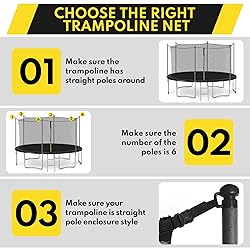 PE MATERIAL: The trampoline net replacement is made of tough PE material, mechanically woven, uniform mesh, bright color, not easy to beak or deform. DOUBLE-HEADED ZIPPER AND PROTECTIVE BUCKLES: The net with double-headed zipper helps kid to open the trampoline from the inside or outside for easy entrance. Besides, the protective buckles ensures your kids bounce safely, no more need on worrying about accidents. ALL-AROUND Our trampoline net provides your child with encircling while jumping. The tightly woven mesh cloth not only ensures good air permeability and breathability, but also helps parents supervise their children at will, so that children can freely bounce. UNIVERSAL COMPATIBILITY: This safety net Designed to be compatible with most 6 pole round frame trampolines, offering great adaptability and fits a variety of brands. EASY REPLACEMENT AND STORAGE: This trampoline safety net is convenient when replacing old or worn out net, not for much time and effort. In addition, it can be folded into a small piece when not in use for easy space saving purposes.