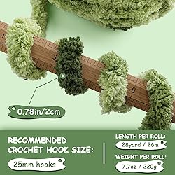 Extra Large Blanket Yarn Size: A set of 8 rolls, each roll bulky yarn weighs 7.7oz/220g, length is 28 yards/26 metres, diameter is 0.78 inches/2 cm. Knitting gauge/number of crochet hooks: US 50 (25 mm), 2.5 stitches - 2.5 rows = 4 inches (10 cm). UPGRADED QUALITY, SUPER SOFT: The thick yarn selected high quality raw materials made of 100% soft polyester, super soft and thick, soft touch as comfortable as baby's skin, and the chunky blanket yarn is odourless and tough. It allows you to enjoy the fun of handmade preparation. EASY TO USE AND VERSATILE: Compared to other fine yarns, this extra large size soft yarn is fluffier and very easy to knit, not easy to make mistakes, the super bulky yarn no matter you are crocheting DIY, blankets, cushions, rugs, scarves, hats, and other knitting projects will be your perfect choice. RICH AND VIBRANT COLOURS WITHOUT FADING: Our plush yarn are available in a wide range of colours for you to choose from, and the thick yarn chunky blanket do not fade after many washes, which can maintain the original colours of the yarns and keep your handmade creations bright and colourful at all times. EASY CARE: The bulky yarn for crocheting machine wash and tumble dry straight away. The chunky chenille yarn for hand knitting you can hand wash or machine wash, the recommended initial water temperature is no more than 30C or 86F, cool dry normally or tumble dry low. Special Note: Do not bleach, iron or dry clean.
