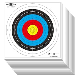 Premium Target Surface Material: Crafted from degradable starch-based plastic, this archery targets paper's material biodegrades naturally within 6 months while boasting unmatched durability and convenience. It withstands repeated folding, twisting, or crumpling with zero risk of tearing, ripping, or persistent creases - all without compromising surface integrity Versatile Use & Easy Storage: Unlike traditional paper-based targets, this target features a smooth surface that allows arrows to be pulled out easily. It works reliably in both sunny and rainy weather and is environmentally friendly. Whether packed in a gear bag, stored for the long term, or used for shooting at the range, the target maintains its shape and stays ready for use at all times Standard International Size: This target boasts a maximum diameter of 15.7 inches/40cm and features 10 circular scoring rings. It follows the 10-ring layout, delivering an ultimate archery practice experience. Each set includes 20 pcs targets Standard International Design: Designed to meet international competitive standards, the 40cm target is suitable for recurve bows, compound bows, and part of traditional bows. It also works for archery, along with other shooting sports Suitable for Other Sports Training: The E5/E10 target is also ideal for casual practice, youth/beginner introduction, 25-meter indoor competitions, beginner precision training, and indoor short-distance friendly matches, meeting the needs of most usage scenarios
