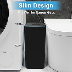 【Smart sensor technology】The touch-free trash can uses a high-tech sensor. The lid automatically opens within 0.1 seconds upon detection if the sensor picks up hands or objects within 30 cm. After they're moved, it closes in 5 seconds. 【Waterproof & Moisture Resistant】With IPX5 waterproof technology, you don't need to worry about water or moisture damaging the device, which enables the trash can to be utilized in bathrooms or humid surroundings. 【Simple &Stylish design】4 gallon automatic sensor garbage can, sized at 10.04L”*6.89” W*13.39” H, is perfect for narrow spaces. Its simple design adds a touch of style to the room. 【Detachable fixing ring】The removable fixing ring helps the garbage bag stay put and stops it from hanging over the edge of the trash can. It maintains a neat appearance and facilitates the insertion and removal of the garbage bag. 【Silent design】The lid can open and shut noiselessly, without causing any disruption to the people nearby.Take advantage of multiple operation modes: hand-sensing, knee-sensing, or a gentle press on the trash can's top, which is convenient to use. 【Sturdy and Easy to clean】: This smart sensor - equipped bathroom trash can with a lid, which is made of high - quality ABS + PP plastic materials, is both sturdy and durable. Its smooth surface facilitates easy cleaning, thus helping to maintain a clean environment. 【Customer Notice】This product is an automatic sensor trash can. Please install 2 AA batteries (not included) and put on a garbage bag following the steps to ensure the normal operation of the trash can. If you have any questions, please feel free to contact us. We will assist in resolving them within 24 hours.