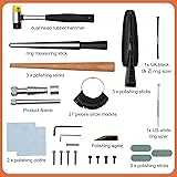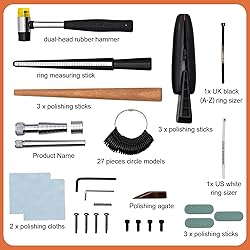 CXRCY Ring Bending Kit:Our ring bending tool includes everything you need: ring sizer measuring tool, finger sizer tool, a polished agate, polishing rods,rubber jewelry hammer, ring mandrl and so on . Multifunctional tool:The ring bender have a variety of sizes to fit different ring and earring designs. Includes six matching precision metal dies in sizes 12, 14, 16, 18, 20, and 22mm, 60-degree and 90-degree angle blocks,we also comes equipped with eight nylon dies without marring delicate materials. Measuring sizer: Ring mandrel in US size 2-15, UK size DZ, wired mark on shaft to straighten ring before measurement; The Ring size gauge contains 27 pieces, US ring sizes are 0-13, there are half yards (a negative number means half yards), no quarter yards, it is easy to get the exact size of your lover. Useful polishing tools: Natural agate polishers are useful tools for working with metal clay, designed for polishing gold leaf and other surfaces to achieve a high gloss, and agate will not damage your items Toddler's treasure:As a diy ring toddler, having the ring making kit is equivalent to having all the necessary tools you need. You can pay for a hobby or give it as a present to a friend who is a lover.