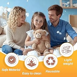 Basic Information: 200g/7.05oz of high-quality polyester fiberfill,fine and dense fiber,good warmth retention,not easy to agglomerate,high resilience.Our polyester fiberfill is packed in vacuum compressed packaging and slowly springs back to its normal shape after unpacking.Please make sure vacuum packaging is acceptable before purchasing. High Material: The polyester fiber filling is made of high-quality new materials,natural white,light and clean,fluffy and soft,full of shape.It is very ideal for plush toys filler and pillow stuffing, suitable for stuffing a variety of different sewing products. Reusable: With good elasticity and fluffiness,it can still maintain its integrity after countless washings,and it is not easy to collapse even after a long time of use,so it maintains a good filling effect. Fluffy and soft: polyester fiberfill material is superior, soft and high resilience, not easy to caking, super durable, natural white, fluffy and soft, full of shape, giving you a pleasant experience Wide Application: Our stuffing fiber has a wide range of applications,it can be used for stuffing pillows,plush toys,cushions,quilts, pet kennels, home textiles,DIY stuffing,and so on.Note: It is more suitable for filling small objects.
