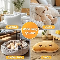 - Basic Information: 200g/7.05oz of high-quality polyester fiberfill,fine and dense fiber,good warmth retention,not easy to agglomerate,high resilience.Our polyester fiberfill is packed in vacuum compressed packaging and slowly springs back to its normal shape after unpacking.Please make sure vacuum packaging is acceptable before purchasing.High Material: The polyester fiber filling is made of high-quality new materials,natural white,light and clean,fluffy and soft,full of shape.It is very ideal for plush toys filler and pillow stuffing, suitable for stuffing a variety of different sewing products.Reusable: With good elasticity and fluffiness,it can still maintain its integrity after countless washings,and it is not easy to collapse even after a long time of use,so it maintains a good filling effect.Fluffy and soft: polyester fiberfill material is superior, soft and high resilience, not easy to caking, super durable, natural white, fluffy and soft, full of shape, giving you a pleasant experienceWide Application: Our stuffing fiber has a wide range of applications,it can be used for stuffing pillows,plush toys,cushions,quilts, pet kennels, home textiles,DIY stuffing,and so on.Note: It is more suitable for filling small objects.