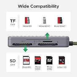 Achieve Blazing Fast 170MB/S Speed: Upgraded UGREEN USB C Card Reader, perfectly adapts to the mainstream high-speed SD/TF cards on the market - including SanDisk Ultra Pro (170MB/s), Lexmark Pro Series and more Card Reader & Card Case in 1:The SD Card Reader with storage has four memory card space for 2 SD cards and 2 TF cards,and the magnetic lid to keep it tightly closed,you won't have to buy a separate SD Card Case. It prevents photographers from losing their memory cards, making it the perfect partner for photographers Plug-and-Play Convenience: Equipped with a convenient Type-C interface, SD Card Reader USB C can be plug&play for USB C smartphones/iPads/laptops, which can quickly and stably 5Gbps transferring high-quality images or videos such as 4K and 8K anytime anywhere Strong Compatibility: The Memory Card Reader holder compatible with popular devices like iPhone 16/15, iPad Pro/Air/Mini, MacBook Pro, Samsung Galaxy S23/S22/S21/S20/Note 20/Note 10 series, etc. The card slot is compatible with SD/ MicroSD, SDHC/ MicroSDHC, and SDXC/ MicroSDXC cards from the camera Read 2 Cards Simultaneously: This Micro SD Card Reader supports simultaneous reading of 1 SD card + 1 TF card and 2 SD card. Great for multitaskers and those who can't decide which card to use first! Note: If you want to speed up to 170MB/S, please use a memory card that meets this speed