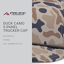 - Equip your team or organization with the Duck Camo 5-Panel Trucker Cap from Pacific Headwear, a perfect blend of rugged style and functionality. Featuring a fully sublimated camo pattern on durable polyester/spandex woven fabric, this cap offers both stretch and comfort. The 5-panel construction and mid-profile design provide a comfortable fit, while the slightly curved visor and self-fabric undervisor offer effective sun protection. With its snapback adjustable closure, this cap ensures a customizable fit, making it a versatile choice for your team or organization.