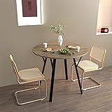 CLASSIC DESIGN: Round dining table featuring a sophisticated vintage charm that adds elegance to any dining space STURDY CONSTRUCTION: Thickened high-quality MDF tabletop supported by durable black metal legs for lasting stability PERFECT SIZE: 35.43 inches in diameter, comfortably accommodating 4 people while being ideal for smaller spaces ADJUSTABLE BASE: Features foot pads that can be adjusted to maintain perfect balance on uneven floors SPACE-EFFICIENT: Compact round shape makes it an excellent choice for apartments, breakfast nooks, or small dining rooms