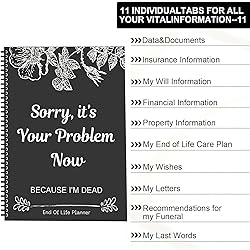 Sorry, It’s Your Problem Now, Because I'm Dead, End of Life Planner Organizer Notebook Death Binder Organizer Kit Document Organizer End of Life Planning Workbook Paperback for Possessions Affairs