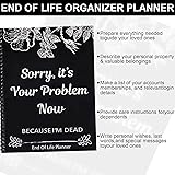 【The End Of Life Planner Organizer Workbook】The End Of Life Planner Organizer Workbook is a humorous end-of-life planning tool entitled "Sorry, it's your problem now because I'm dead."This end of life planner funny edition helps you organize your final arrangements with a light-hearted touch 【Comprehensive Organization】This best end of life organizer includes sections for all your important information, making it easy for your loved ones to find everything they need, including financial arrangements, plans, inheritance distribution, etc., so that loved ones can get help when unfortunate events occur 【Guided Filling】The end of life planner organizer binder is designed for ease of use, with clear sections and prompts to guide you through the process. This life book organizer is perfect for anyone looking to get their affairs in order 【Durable and Stylish】Featuring a hardcover notebook design, this end of life planning book is both durable and stylish. The funny notepads and funny notebooks elements add a unique touch, making it a memorable and useful tool 【End-of-Life Care & Final Wishes】Clearly outline your end-of-life wishes, designated decision-makers, and any special requests you have, ensuring your wishes are respected and followed