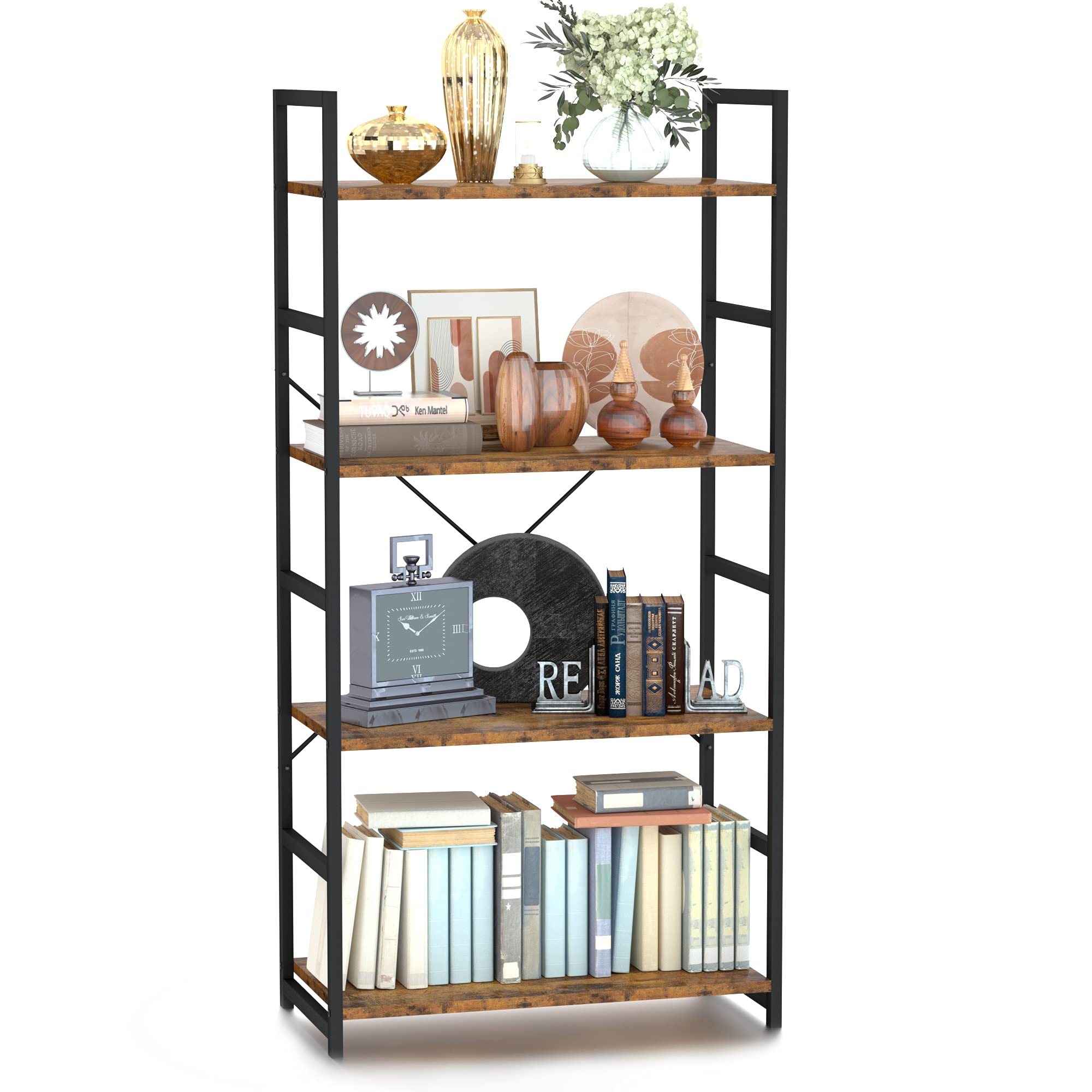 NUMENN Triple Column 6 Tier Bookshelf, Bookcase with 17 Open Display Shelves, Adjustable Rustic Industrial Style Book Shelves, Modern Bookshelves for Bedroom, Living Room and Home Office, Black