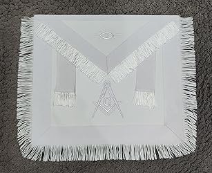 Faux leather center for a classic look and feel 2" wide white polyester grosgrain ribbon border for added elegance Machine-embroidered Masonic eye and "G" symbol for a touch of traditio White fringe tassels for a decorative finish Adjustable, extendable belt with metal clip and snake hook for a secure fit