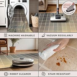 Effortless Maintenance & Machine Washable: This durable 5x8 area rug is designed for high-traffic spaces like small living room, dining room under table, nursery room, playroom, dorm, home office and bedroom under bed. Easily refresh with regular vacuuming or machine wash for deep cleaning—stays vibrant through everyday use Secure Grip: Equipped with a non-slip rubber backing, this rug provides a secure grip on your floors, preventing accidents and offering peace of mind. Cozy Low-Pile Comfort: Crafted from soft, plush faux wool, this rug features a dense yet low-pile construction that adds luxurious comfort underfoot without obstructing doorways. Stylishly Versatile Design: Transform your living space with our rug's rich, sophisticated brown hues. Its eclectic design, featuring grid - like patterns, infuses a touch of timeless charm and minimalist aesthetic, making it a perfect fit for any room in your home. Thoughtful Details: While folded rugs may arrive creased, simply roll them out and allow time for the fibers to settle. Vacuuming with a soft brush and gently machine-washing in cold water will help maintain its pristine appearance.