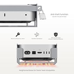 Space-saving solution that enhances cable management. This Mac-mini rack mount stand can be mounted behind the computer monitor(Flat or Recessed), under the desk, or mounted on the wall. Unique design ensures ports and cables remain unobstructed for seamless connectivity. The VESA mounted holder is constructed from pure aluminum metal with EVA foam padding inside to prevent scratches and abrasion resistance, providing enhanced protection. Monitor mounted bracket has an anti-theft function because of two alternative anti-theft bars (NOT include lock). Protect your Mac-mini M4 2024 from being stolen or moved around at will! Features a ventilation design to keep cooling and prevent overheating. So much so that this Mac-mini M4 / M4 Pro 2024 mount has good heat dissipation whether it is mounted behind a display, under a table or on a wall. NOTE: if the VESA mount is installed on the back of the computer/display monitor, it will not allow the use of the monitor arm or stand. An additional VESA extension plate is required for compatibility. Made with pure aluminum to make our VESA mount lighter. Compared to other iron mounts, Fasgear monitor VESA mount can reduce weight by 60%, thus lightening the weight burden on your computer/display. Besides, please pay attention to the weight capacity of the mounting bracket to use the monitor arm/ stand lifting function. The total weight of the mount and the Mac-mini M4 2024 is 0.84KG, total weight of the mount and the Mac-mini M4 Pro 2024 is 0.9KG. The adapter plate used with the VESA bracket to mount the mini PC or NUC in place frees up desktop space and improves cable management. It makes the desktop look both neat and clean, with no more mess. Dual-plate twist and non-flat design reserve more space for installing a VESA mounting bracket.