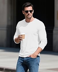 [Fabric] The Long Sleeve Shirts made of high quality combed cotton. Soft, comfortable, moisture wicking and breathable [Crew Neck] The thin T-shirt is designed with a ribbed crew neckline, which is simple, stylish and resistant to distortion [Tagfree] This cotton T-shirt is designed with a tagfree neckline that reduces friction against the skin for a more comfortable fit. [EASY TO MATCH] Classic and fashionable styling, you can match it with any jacket or pants you like, or as a base layer with other favorite outfits [Occasions] This base t shirt is suitable for indoor and outdoor daily casual wear in all seasons, such as dating, working, traveling, beach, party, holiday, sports, business office and so on