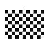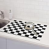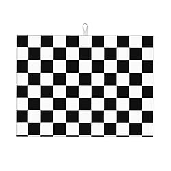 Black White Checkered Dish Drying Mat for Kitchen Counter, Coffee Bar Accessories, Retro Classic Plaid Pattern Absorbent Coffee Mat Kitchen Drying Mat Easy Clean 18" x 24"