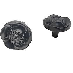 Antique Rose Drawer Pulls: These black rose cabinet knobs with backplates are handcrafted. Every knob is well crafted by quality zinc alloy in a shabby chic design, to provide an elegant look, these will make such a dramatic difference in the renovation of your room. Easy to Install: The decorative knobs are super easy to install. The size of rose knobs are 1.18'' in diameter. 3 Size Mounting Screws: Most sellers on the market just offer one size screw, while you will get 3 different size screws from us: 22mm, 25mm(0.98 in) and 30mm(1.18 in), so the drawer knobs can be used on many different drawers without a separate trip to the store to find a length that works. Decorate and Update your Old Furniture: Suitable for kitchen/bedroom/bathroom, add some vintage and romantic character to your kitchen cabinet, chest, dresser, vanity, cupboard, closet, sideboard, bookcase and so on. Make your cabinets look brand new again, perfectly match with European style. Adorable Gift Idea: With its gorgeous apperance and practicability, these rose cabinet knobs will be a best way to decorate your home, or send those to your friends as a Thanksgiving and Christmas housewarming gift.