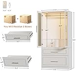 PAKASEPT Armoire Wardrobe Closet with Glass Door and Drawers, Bedroom Closet Wardrobe Cabinet with Hanging Rod, Lighted Freestanding Armoire Storage Cabinet for Bedroom Cloakroom White
