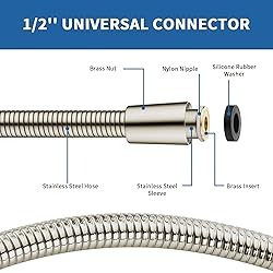 - GRICH 71-inch stainless steel shower hose combines durability and practicality, and features dual universal G1/2'' connector for greater compatibility. Made of 304 stainless steel, after millions of rigorous tests that are truly explosion-proof, high-pressure resistant, anti-leaking, corrosion and rust. Flexible and extended hose makes it ideal for showering your kids and pets, allowing you to reach that couldn't before.