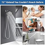 71'' Stainless steel shower hose: Feature dual lock design and come with washer, no wrench needed, which is easier to install. Flexible and extra long shower hose makes it ideal for showering your kids and pets, allowing you to reach that couldn't before Eco-friendly high density structure: Reinforced long shower hose inner made of premium PVC material with higher density, leak-proof at the same time resistant to high pressure, high temperature and bursting, which will not degrade or release any hazardous substances Toughness, rust & corrosion resistance: Made of premium stainless steel and finished with brushed nickel, highly elastic and rotatable with no winding in use, this handheld shower hose will stand up to long-lasting use Install just in minutes: This hose for shower head features robust brass connectors that fit G1/2" connection, tightly structure without leakage, effortless to install or replace, and smooth water flow in use Promise your shopping experience: If you encounter any problems during use, please feel free to contact us! We will get back to you as soon as possible within 24 hrs as well as the warranty. We look forward to your visit!