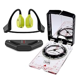 SUUNTO MC-2 Compass: Made with serious hikers in mind, this professional mirror compass was designed for precise directional measurement and has been balanced for global use with Metric UTM scales and inch ruler Precise And Dependable: Operable in low light conditions, the MC-2 Compass includes a sighting hole and notch for accurate bearings, declination adjustment tool, and a clinometer Stay On Course: Made in Finland, Suunto mechanical compasses help you safely and accurately navigate the great outdoors; Great for Alpine skiing, hiking, trekking, mountain biking, trail running and more SUUNTO Wing - With the SUUNTO bone conduction headphones, you can immerse yourself in 10 hours of non-stop music. The included charging stand not only makes charging more portable, but also provides your headphones with an additional 20-hour battery life for a total of 30 hours! Furthermore, this headset comes with a fast charging feature that charges in 10 minutes for 3-hour endurance and fills up in 1 hour. Born For Sports - Titanium and silicone materials ensure lightweight, and the ergonomic design provides a comfortable and stable wearing experience. The red LED safety lights on both sides make you visible in a night run. With an IP67 rating, the headphones are resistant to water, sweat and dust for running and workouts.