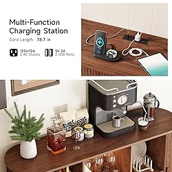 - 1.Modern Wine Cabinet: Holds 9 glasses and 12 bottles, with adjustable shelves and a large tabletop for appliances. 2.RGB LED Cabinet: Customizable lighting and 2 AC/2 USB ports for charging, versatile for any room. 3.Solid Buffet Cabinet: 55.1" W x 15.7" D x 35.4" H, with rounded edges and a wall-mount kit for stability. 4.Versatile Sideboard: Serves as a buffet, bar, console table, or accent cabinet, fitting any space.