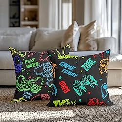 CQM 2 PCs Pillow Covers 18x18, Gaming Throw Pillow Covers, Gamer Gifts Game Room Decor Pillow Cases Decorative Pillow Protectors Teen Boys Gaming Room Home Living Room Decor for Cushion Couch Bed