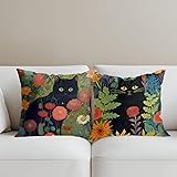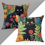 2 PCs Pillow Covers 18x18, Garden Cat Throw Pillow Covers, Cat Decor for Cat Lovers, Pillow Cases Cat Lover Gifts Decorative Pillow Protectors Living Room Nursery Office Home Decor for Cushion Car Bed